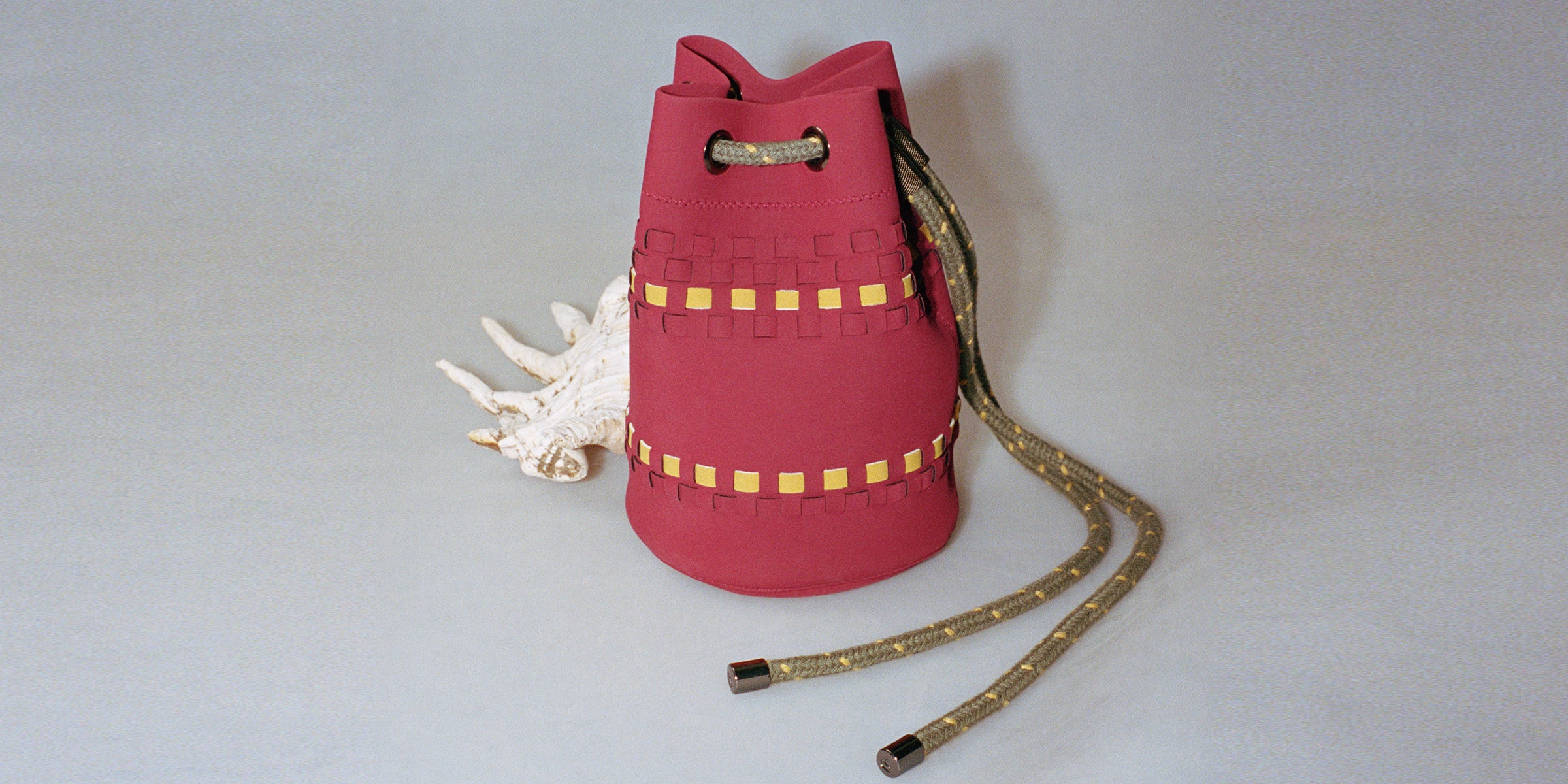 Using our custom neoprene we have re-intrepreted the Italian intreccio design to create a woven ditty bag!