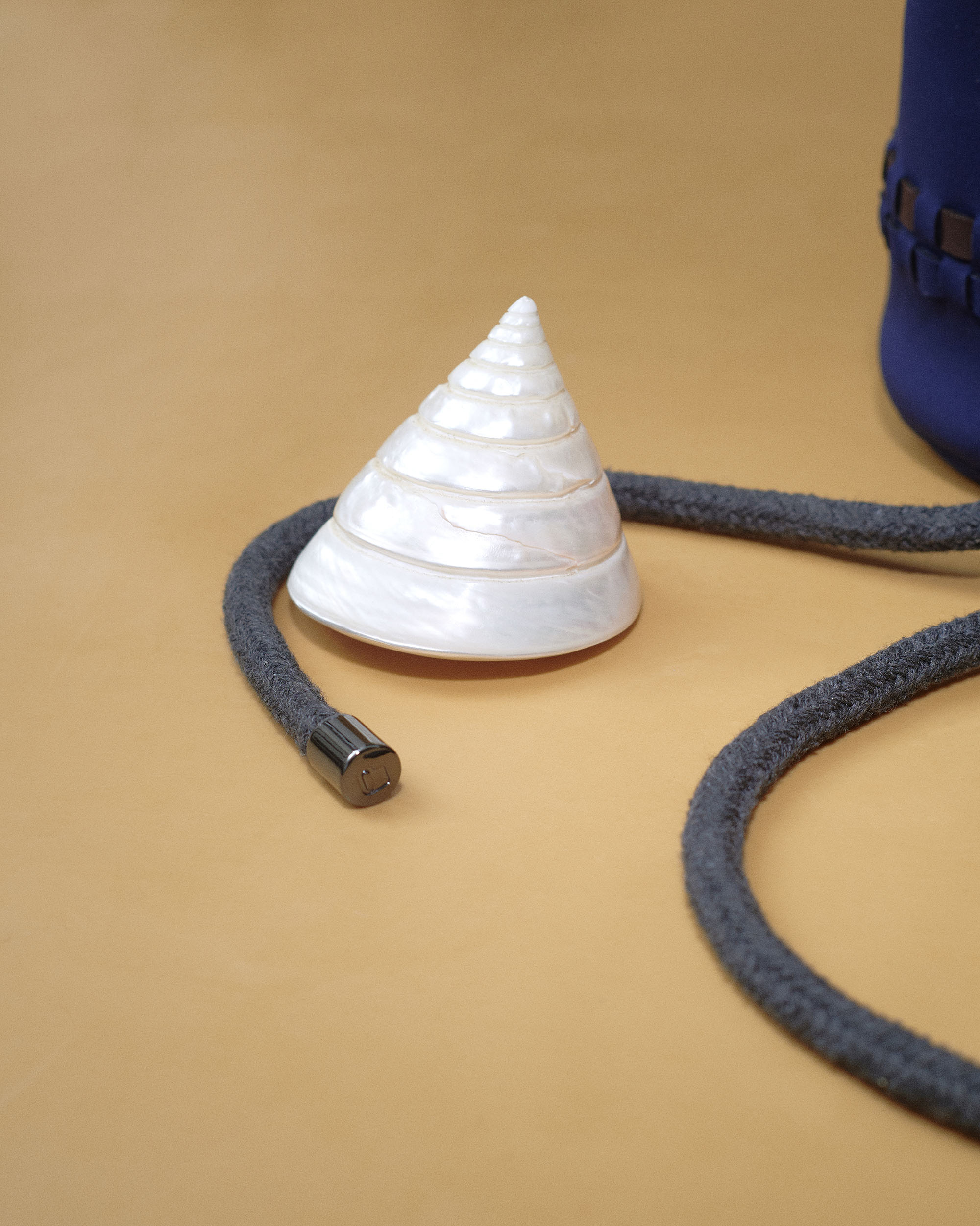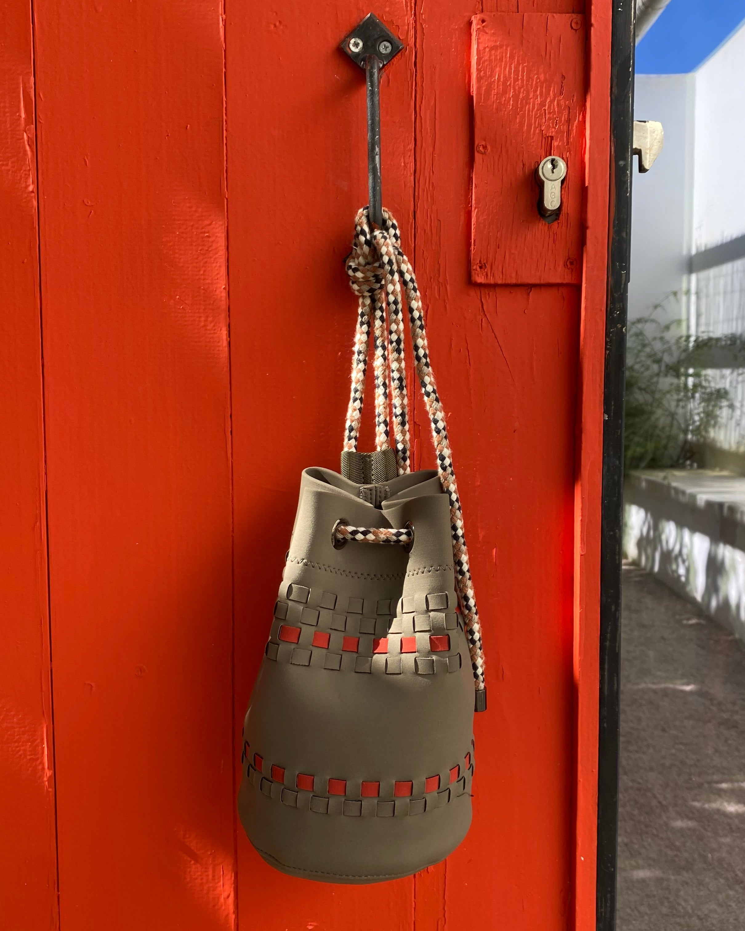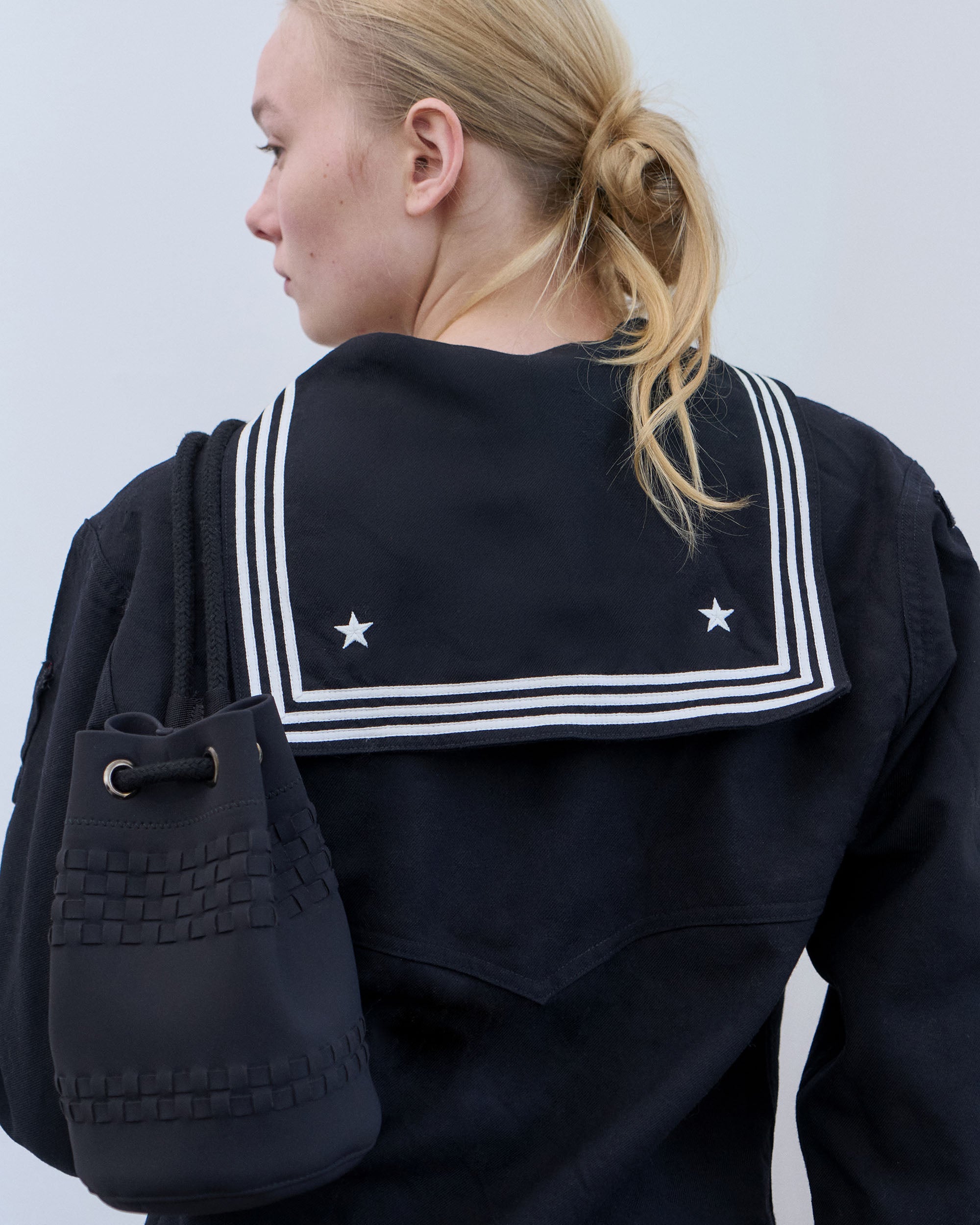 Rooted in maritime tradition, POCCA's debut collection - The DITTY - reinterprets the classic sailors’ ditty bag through material innovation and versatility. Working closely with Italian artisans, we developed a custom technical neoprene and used this to transform Italian “intreccio” into a modern statement. The multifunctional drawstring allows the Ditty to be worn cross-body, over the shoulder, or as a small accessory with two handles.